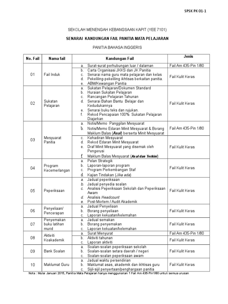 Related : Fail Panitia Bahasa Inggeris - Sehubungan dengan itu, sistem guru online mengongsikan senarai kandungan fail panitia yang lengkap untuk kemudahan dan rujukan kita bersama..