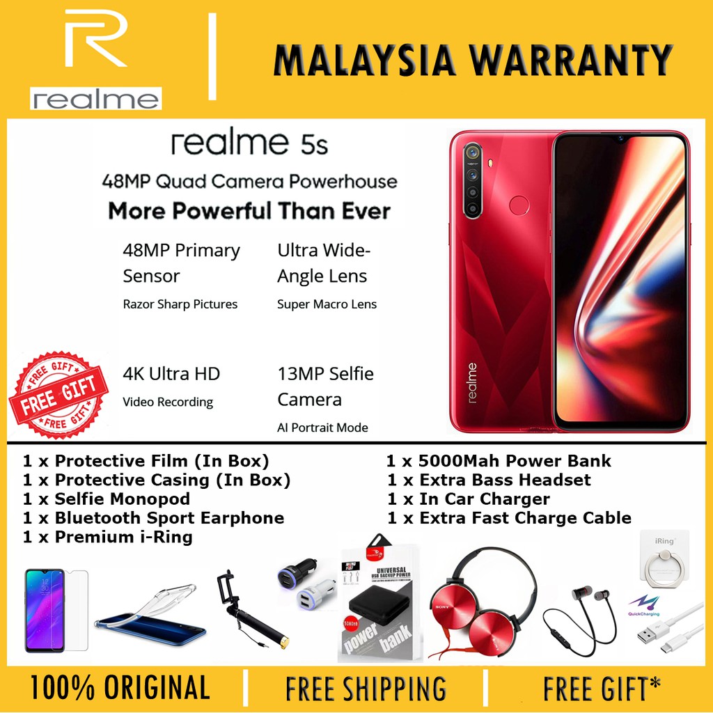Realme 5s price is myr. The cheapest price of realme 5 in malaysia is myr209 from shopee. More realme mobiles more brands. The realme 5s is priced at rm799. Quad 12mp + 8mp + 2mp + 2mp front camera :