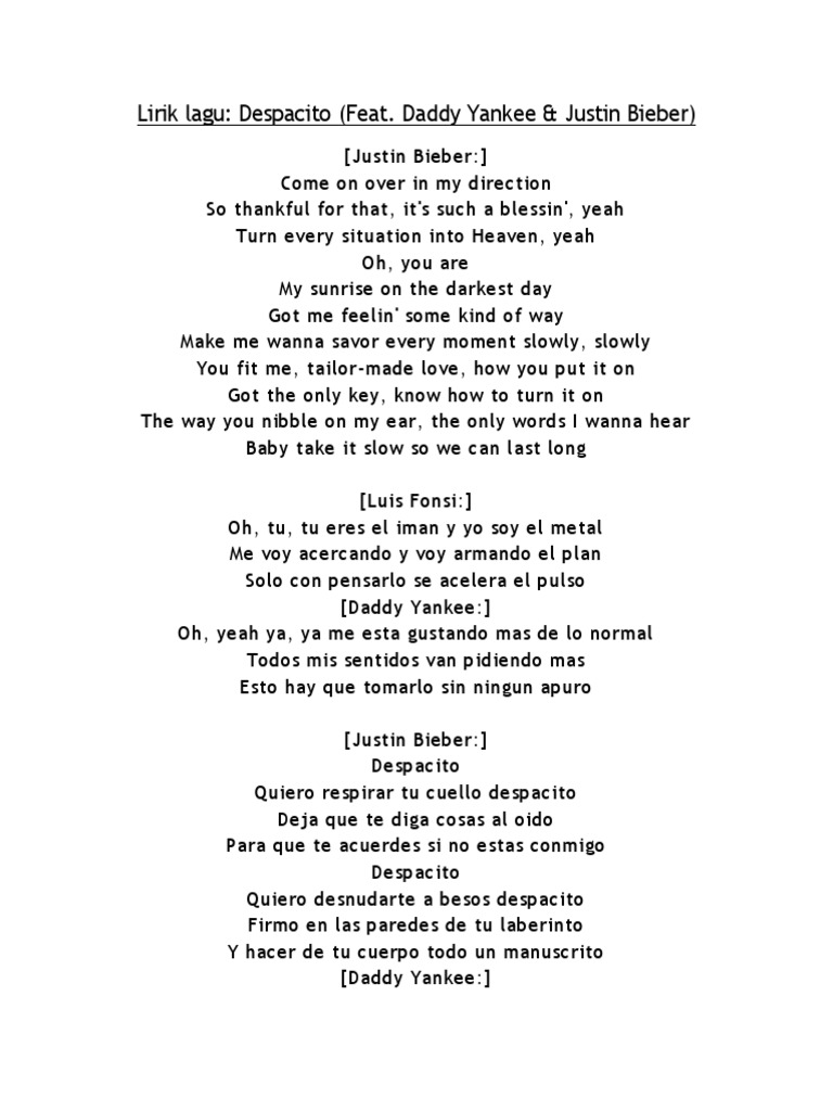 Read lagu despacito versi malaysia from the story lirik lagu by ain_hasanah99 (siti_nur) with 1,890 reads. Dengan kepopularitian lagu despacito yang semakin meningkat, maka banyaklah versi cover yang dibuat oleh para peminat, sampaikan versi melayu pun ada. By admin posted on june 3, 2017. (lagu viral) wik wik wik nathan fingerstyle parodi lirik makanan indonesia lagu thailand. Maybe you’ve sung the lyrics into somebodyâ.